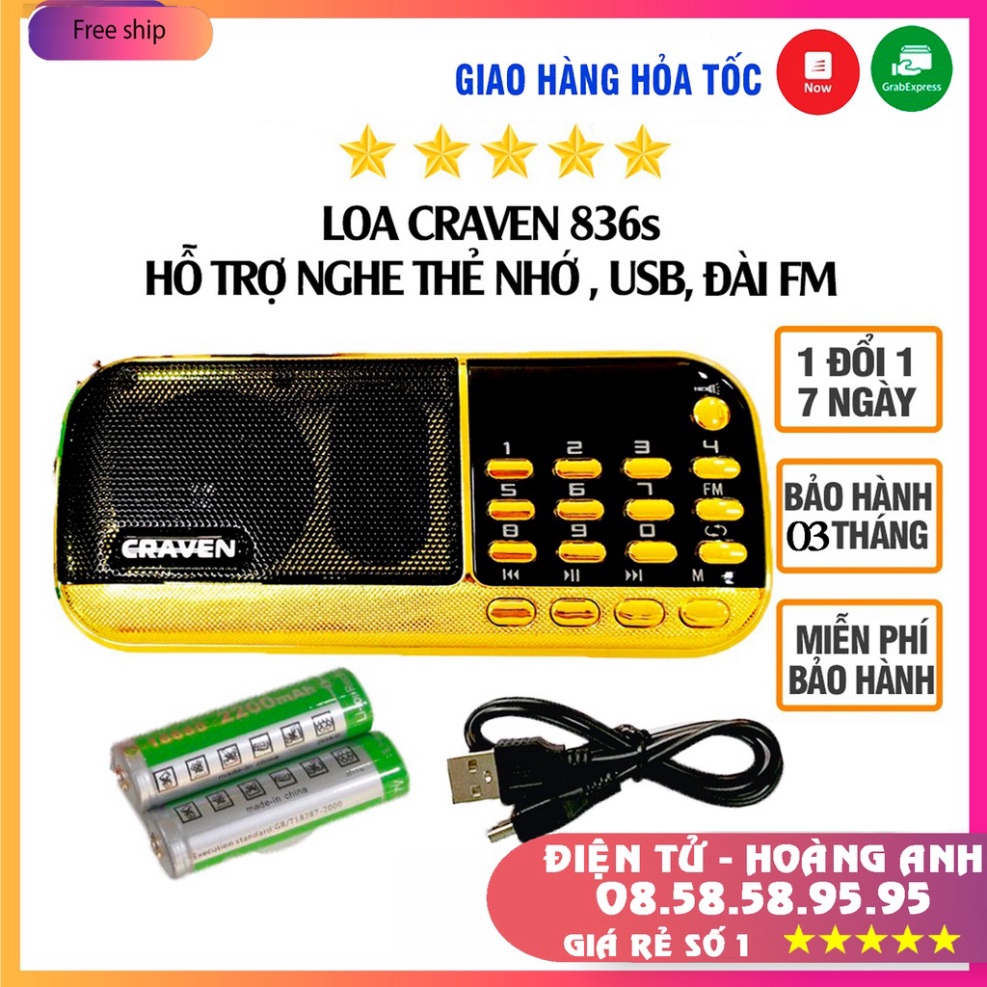 • Loa nghe nhạc USB thẻ nhớ FM Craven CR-836s 2 pin siêu trâu.
