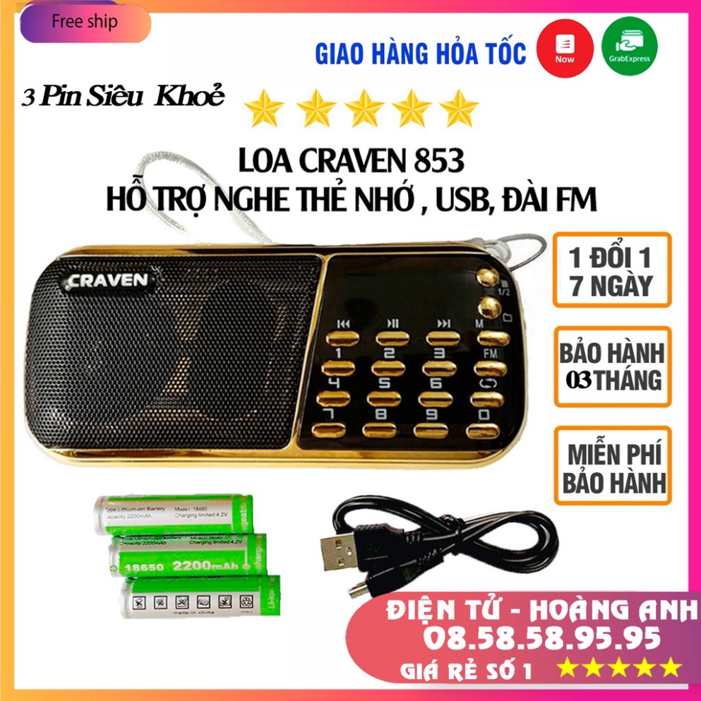 Thiết Bị Âm Thanh > Máy nghe nhạc > Radio & Cát-sét || Loa đài Craven CR 853-836s, máy nghe nhạc đọc kinh phật dùng thẻ nhớ, USB, FM pin siêu trâuCòn hàng