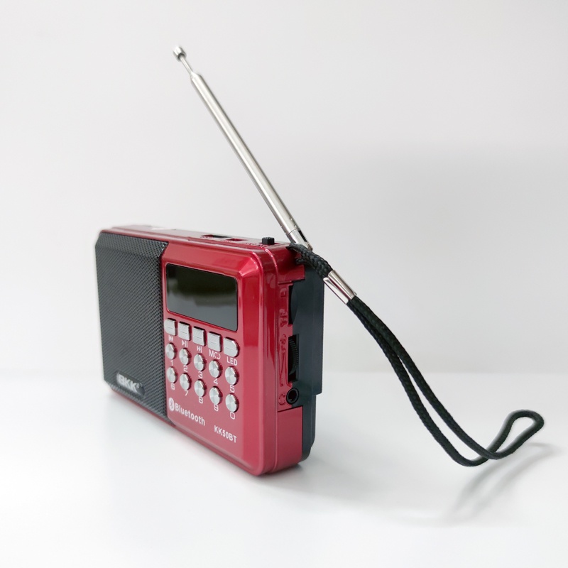Thiết Bị Âm Thanh > Máy nghe nhạc > Radio & Cát-sét || Loa đài FM đa năng BKK KK50BT hỗ trợ bluetooth/ thẻ nhớ/ USB/ Tai nghe/ Đèn pin - dùng pin rời 18650 (Đen đỏ)Còn hàng