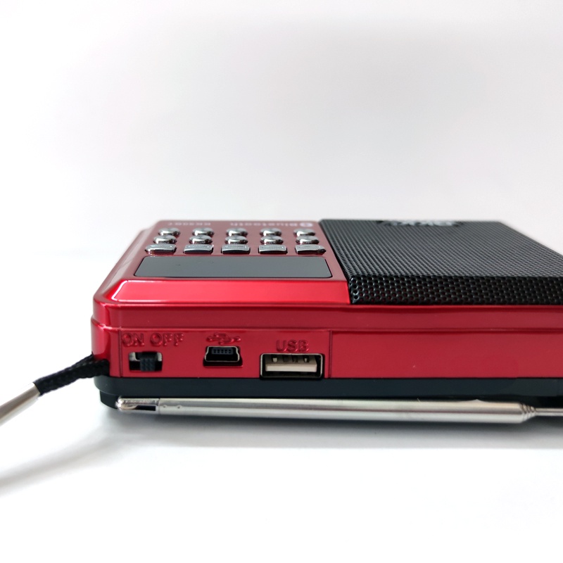 Chức năng: Bluetooth, đài FM, thẻ nhớ (microSD), USB, tai nghe 3.5mm, đèn pin chiếu sáng