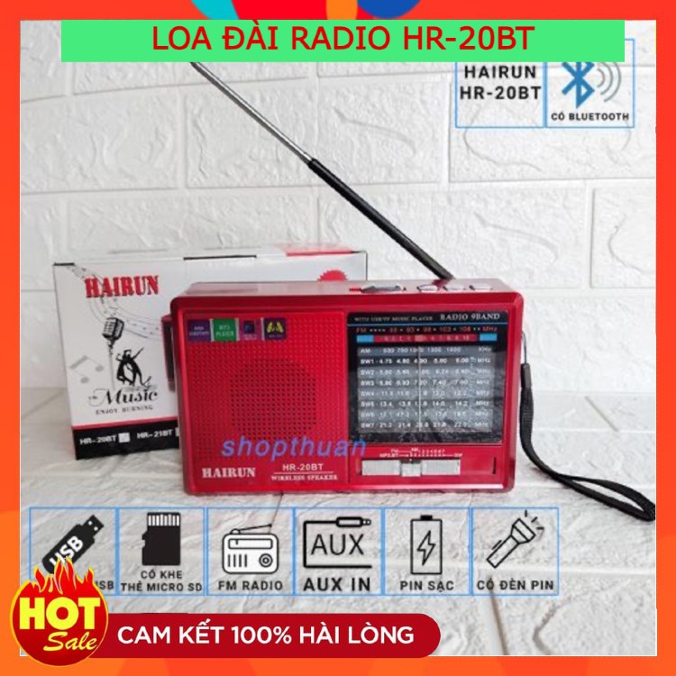 Loa Đài Radio HAIRUN HR-20BT ⚡FREE SHIP⚡ Chạy USB , Thẻ Nhớ , Kiêm Đèn Pin . Bắt Sóng Cực Tốt , Loa To , Dễ Sử Dụng