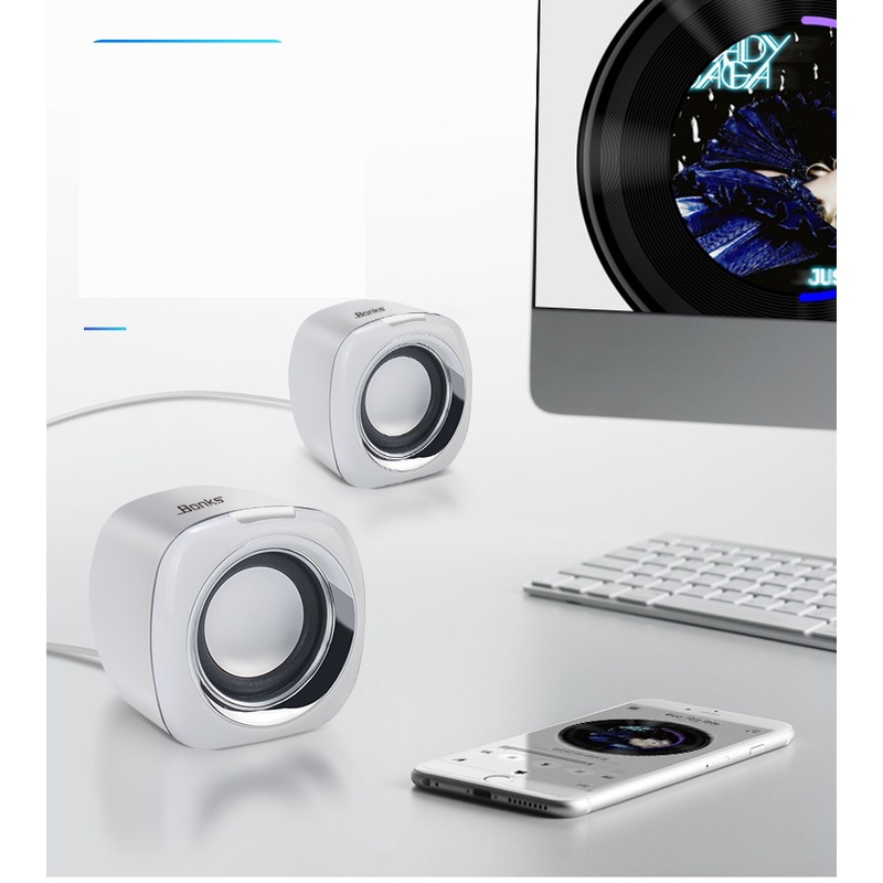 Cặp loa vi tính mini 2.0 nhỏ gọn âm lượng siêu ấm thích hợp nghe nhạc, chơi game cho không gian nhỏ.