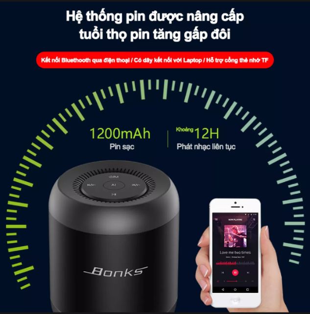 loa di động bluetooth 5.0 BONKS Q33 âm thanh HIFI , BASS siêu chắc , stereo speaker , hỗ trợ thẻ nhớ đến 32G