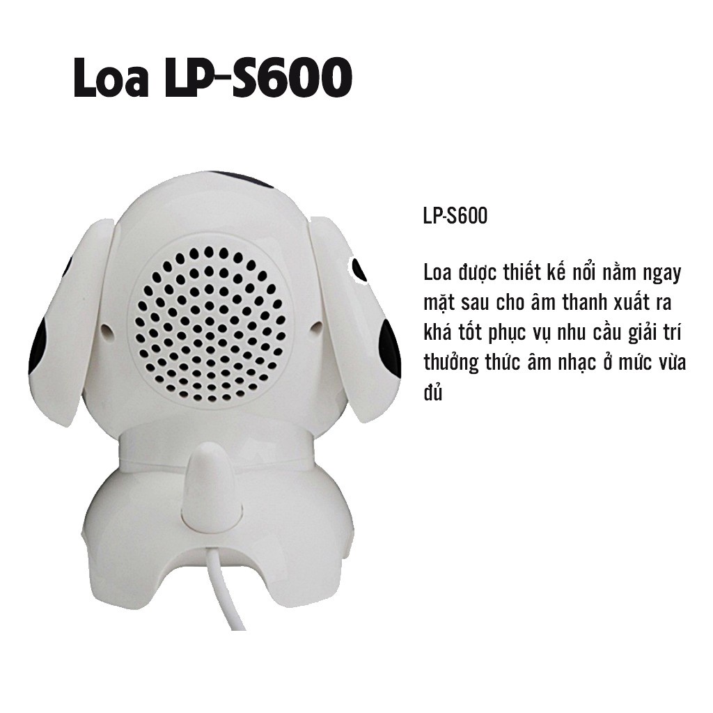 Âm nhạc là một nhu cầu giải trí không thể thiếu trong cuộc sống hàng ngày. Có nhiều loại thiết bị phát nhạc khác nhau từ bình dân như những chiếc điện thoại thông thường, cho đến những chiếc Laptop và cao hơn là những hệ thống âm thanh nổi cao cấp. Đối với người dùng phổ thông thì thưởng thức âm nhạc trên điện thoại hay máy tính đã đủ đáp ứng nhu cầu. Nhưng đôi khi chúng ta lại không thích đeo tai nghe cả ngày hoặc chất lượng âm thanh của loa tích hợp trên thiết bị không được như ý. Đó là lúc chúng ta cần trang bị cho mình một chiếc loa với chi phí không quá cao nhưng chất lượng âm thanh có thể chấp nhận được. China LP-S600 là chiếc loa dành cho máy tính hay điện thoại có chất lượng âm thanh tương đối tốt và phù hợp túi tiền của nhiều bạn trẻ, đặc biệt là học sinh, sinh viên. Một điểm thú vị của chiếc loa China LP-S600 được thiết kế có hình dạng robot. Hình ảnh dễ thương, ngộ nghĩnh của chú loa robot sẽ giúp người dùng có những phút giây thưởng thức âm nhạc sản khoái và thú vị nhất.Thiết kế độc đáo