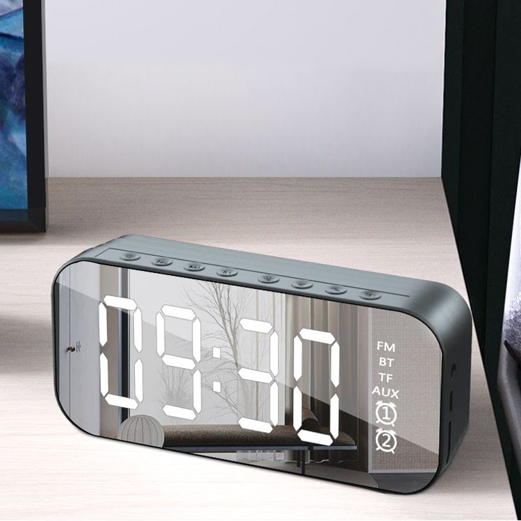 Loa Đồng Hồ A18 Mặt Gương Hiển Thị Đèn Led - Loa Bluetooth - Đài FM - Đồng Hồ Báo Thức 3 in 1✪ Chất liệu : Nhựa - Kim Loại