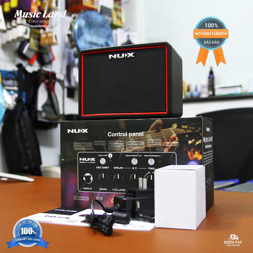 - Sản phẩm này bao gồm 3 Channels, 2 hiệu ứng Reverb Delay . Hỗ trợ thêm line-in 6 ly và một kết nối Bluetooth để giúp bạn Jamming theo Backing Track của riêng bạn. Bạn cũng có thể luyện tập kỹ năng Jamming của mình thông qua việc sử dụng chức năng Drum và Metronome của Mighty Lite Nux Amp.