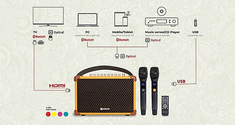 - Thiết kế tươi trẻ, đa màu sắc dành riêng cho người đam mê âm nhạc, karaoke