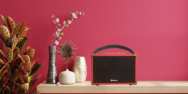 Về chất liệu, vỏ thùng loa được bao bọc một lớp da PU cao cấp, các góc có miếng ốp bảo vệ đảm bảo độ bền bỉ để tối ưu cho các linh kiện bên trong. Với 4 phiên bản màu: Red, Purple, Yellow, Blue được lựa chọn theo tone màu xu hướng đương đại, cực thời trang sẽ mang lại cho loa diện mạo nổi bật và tương thích với bất kỳ không gian nào.