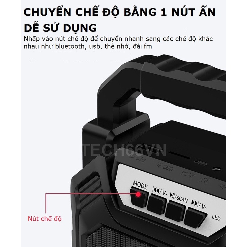 + Chức năng: Bluetooth, cắm micro có dây, thẻ nhớ TF, USB, cổng aux 3.5mm, radio FM