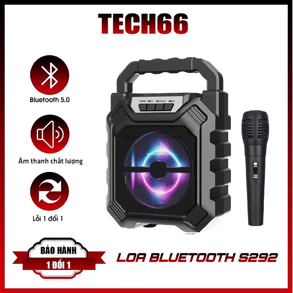 Loa karaoke bluetooth không dây S292 kèm micro có dây nghe nhạc hay đèn led 7 màuLoa bluetooth di động kèm mic