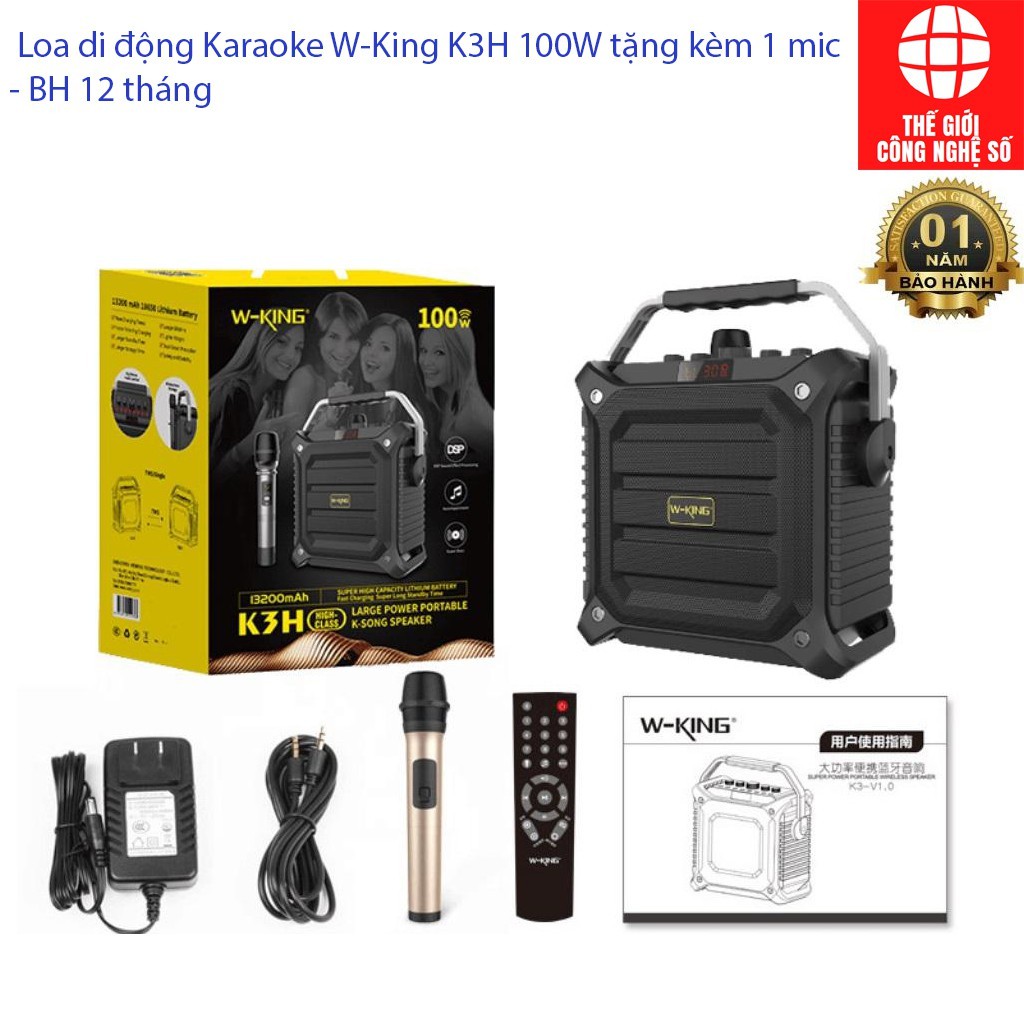 [Mã ELHACE giảm 4% đơn 300K] Loa karaoke bluetooth W-King K3H 100W tặng kèm mic, Loa di động, Pin cực lâu - BH 12 tháng