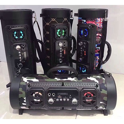 Thiết kế loa hình chữ trụ với mặt trước là hệ thống loa, phím điều kiển, phím tang giảm âm lượng, phím tăng giảm Bass,cổng cắm Mic hát Karaoke, cổng cắm USB, cổng cắm thẻ nhớ, cổng AUX(cổng Jack 3.5mm), phím Mode chuyển đổi(chuyển từ nghe từ FM, sang nghe USB, Aux, Bluetooth).