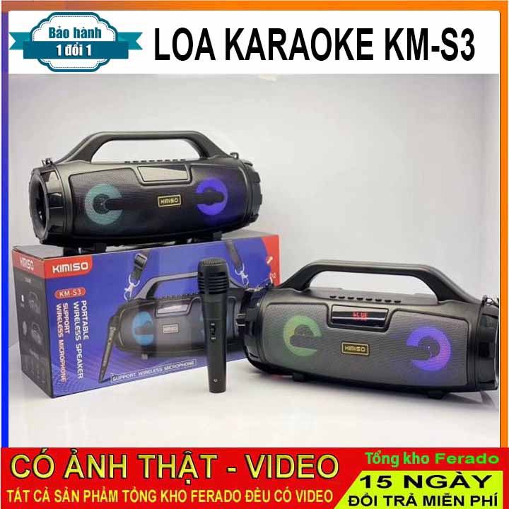 Tổng kho gia dụng Ferado xin kinh chào quý khách ,dear hot hôm nay shop xin giới thiệu đến quý khách mẫu sản phẩm mới này.* THÔNG TIN SẢN PHẨM: Loa Bluetooth Kèm mic Kimiso S3 (Dòng cao cấp loại 1). Sứng danh là đàn anh của Kimiso S2, Kimiso S1, siêu bền, loa chắc nịch, hát cực đã.