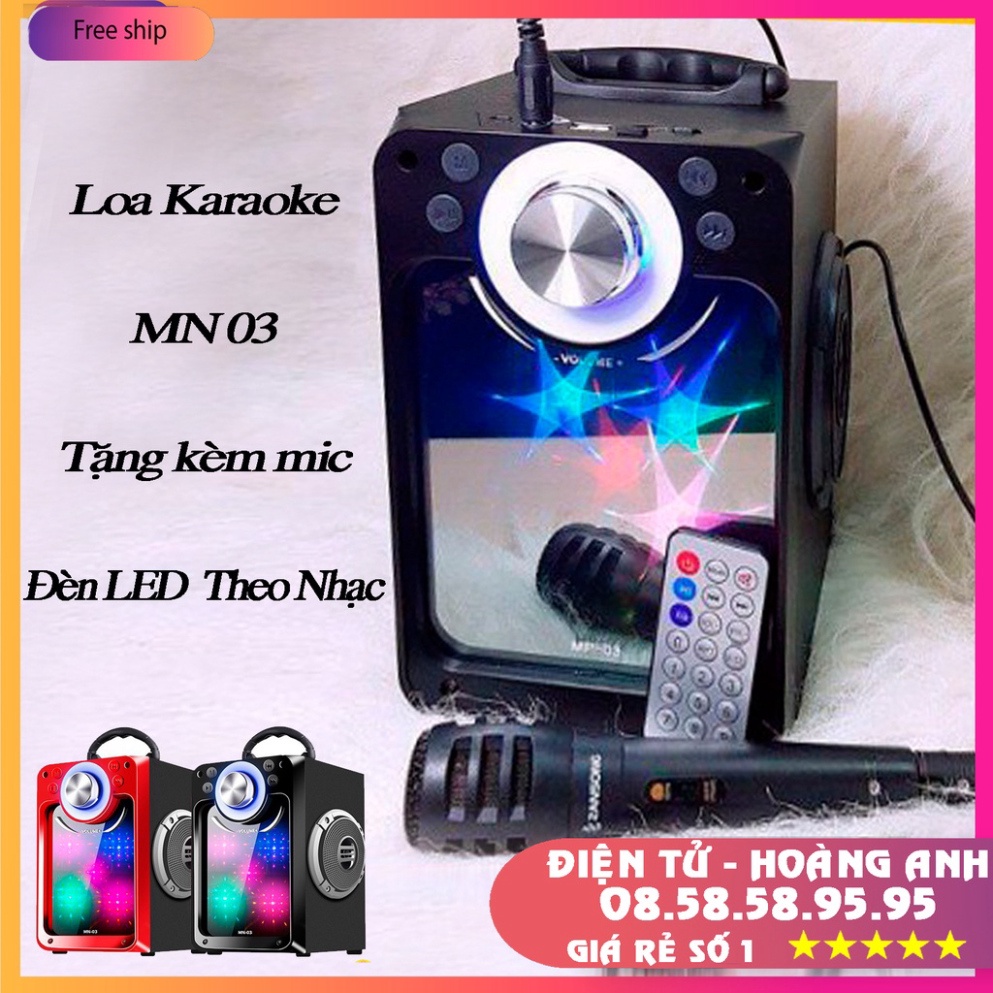 Loa karaoke MN03 có đèn led mặt gương kèm mic có dây nghe tuyệt hay loại xịn