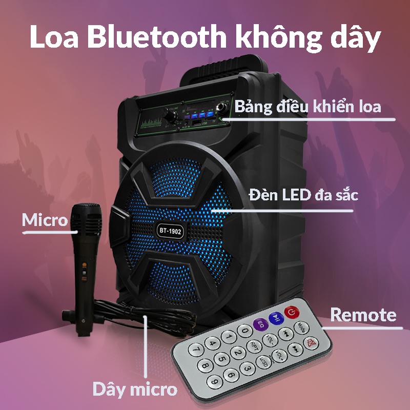 Mô tả sản phẩm: Loa Bluetooth nghe nhạc, kết nối không dây BT-1902