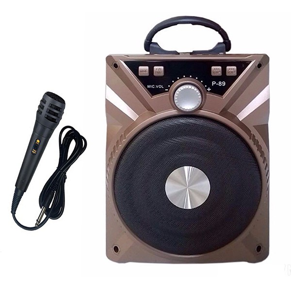 Loa bluetooth, karaoke P88, tuy có thiết kế bên ngoài khác biệt nhưng tính năng của loa P88 cũng tương tự như mẫu P89, cũng vẫn hỗ trợ nghe nhạc qua kết nối không dây với các thiết bị, ngoài ra loa còn tích hợp thêm 2 cổng nghe nhạc từ USB và thẻ nhớ, P-88 còn có thêm cổng cắm mic có dây: chúng ta có thể dùng chức năng này cho việc đáp ứng các nhu cầu: đào tạo, bán hàng, quảng bá, hướng dẫn, ca hát giải trí ...
