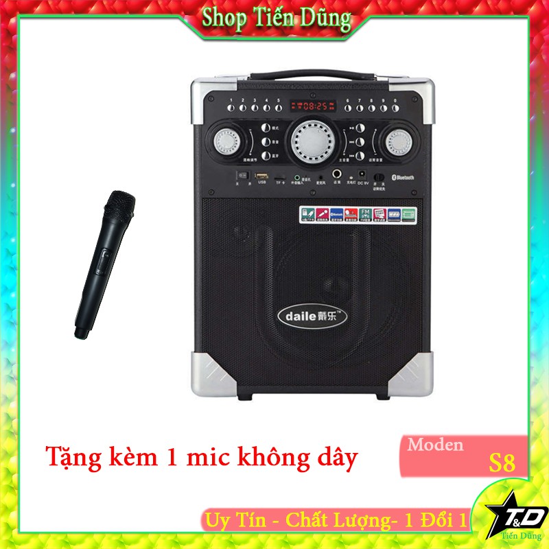 Thiết Bị Âm Thanh > Dàn âm thanh > Loa || Loa kéo daile S8 có mic không dây kết nối bluetooth USB và thẻ nhớ TF- loa kẹo kéo s8 dễ sử dụng tiện cho mọi ngườiCòn hàng