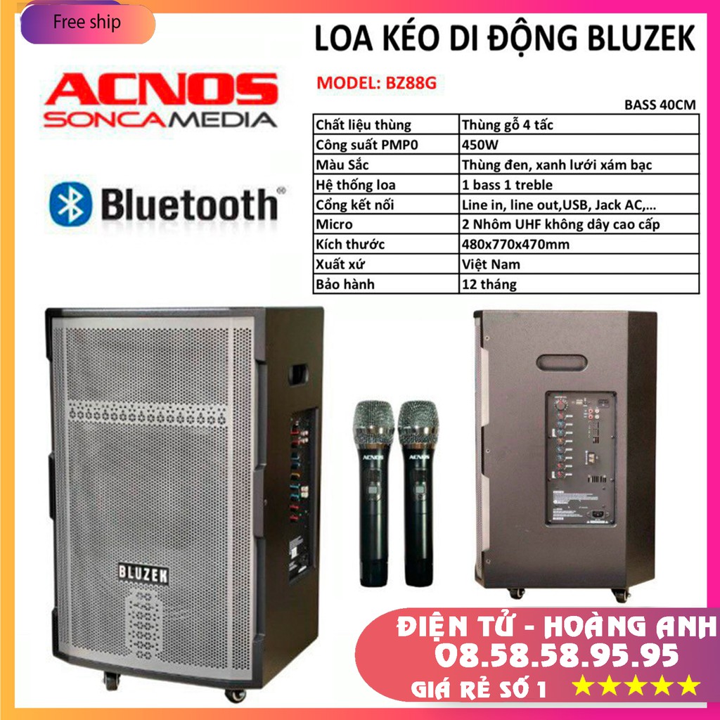 Thiết Bị Âm Thanh > Micro thu âm || Loa Kéo Di Động ACNOS BLUZEK BZ88G - Công Xuất LớnCòn hàng