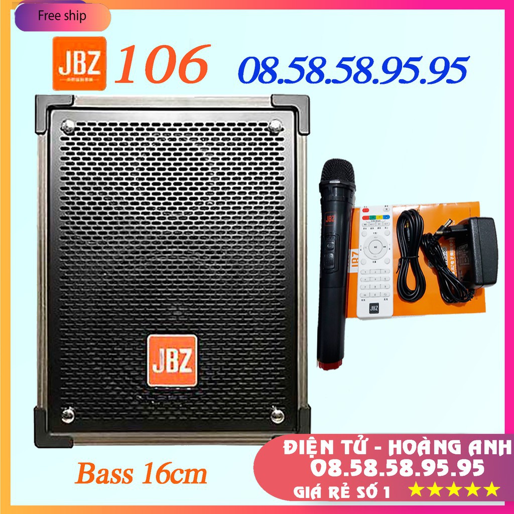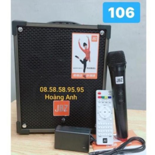 Loa kéo di động JBZ 106-Bass 1.6 tấc(16cm)CS-200W+1Micro Không Dây+Remto+adapter sạc+dây tín hiệu tivi(107+108+109)