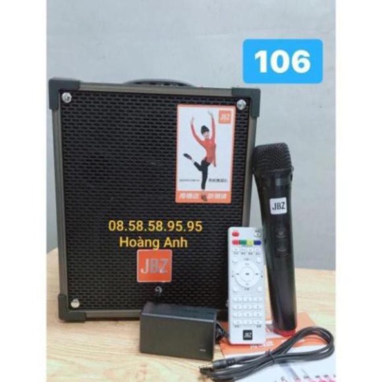 Loa kéo di động JBZ 106-Bass 1.6 tấc(16cm)CS-200W+1Micro Không Dây+Remto+adapter sạc+dây tín hiệu tivi(107+108+109)