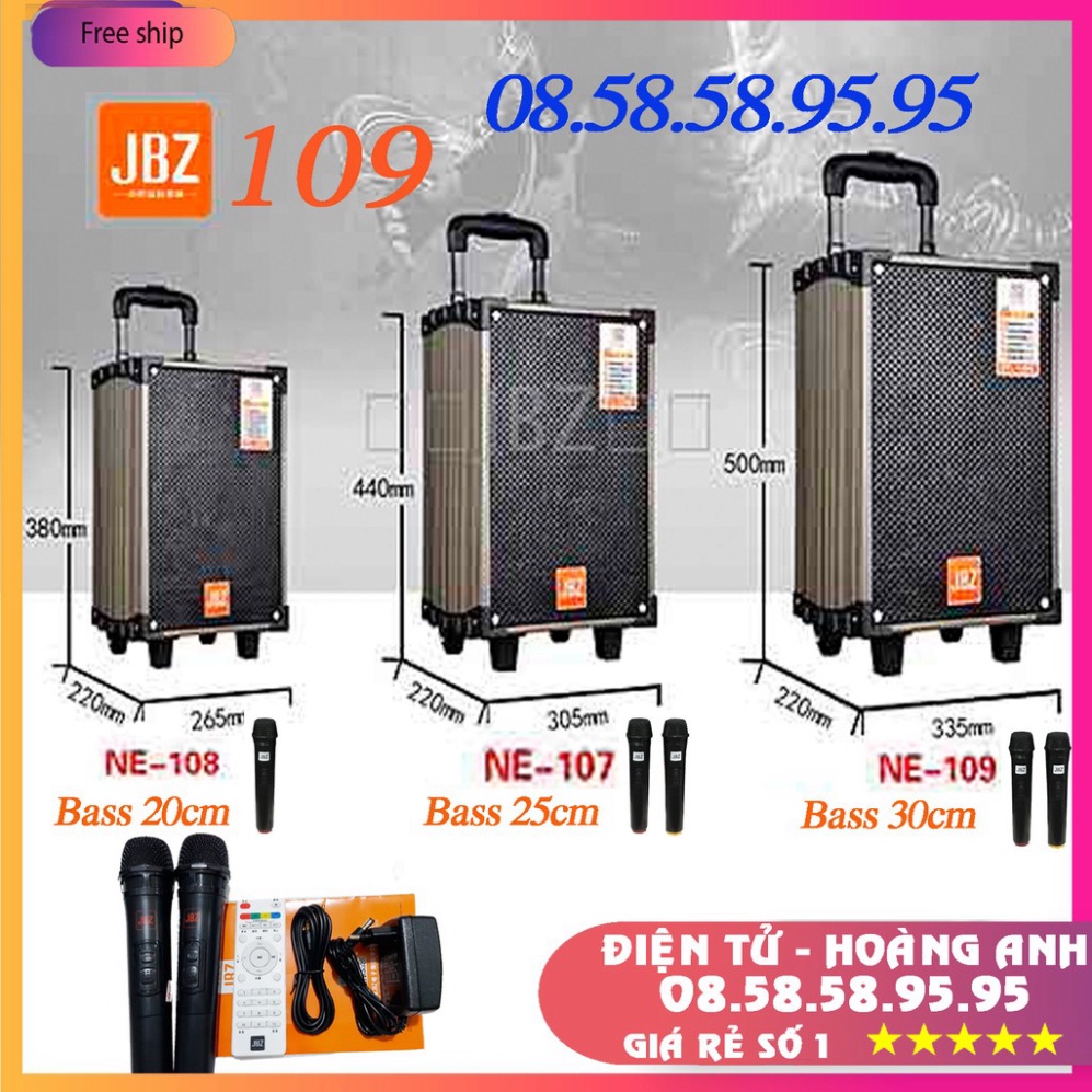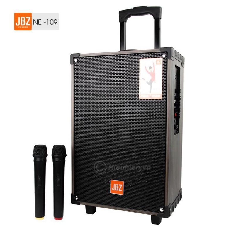 Loa kéo di động JBZ - NE109, mẫu lớn nhất trong 4 model 106/107/108/109, với vỏ loa đóng bằng gỗ được bọc bên ngoài một lớp simili để tăng tính thẩm mỹ bên ngoài và làm tăng giá trị của sản phẩm. Loa sử dụng củ loa 12 inch nên công suất phát ra tương đương một chiếc loa 4 tấc, khi đạt đỉnh loa có thể lên đến 350W