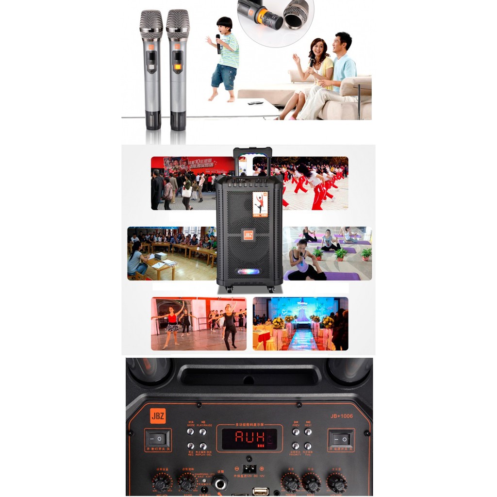 Loa kéo di động Karaoke Bluetooth cao cấp JBZ JB+0806 / 1006 / 1206 Bass 2 Tấc (Đen) + Kèm 2 micro không dâyĐẶC ĐIỂM NỔI BẬT: