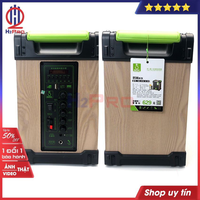 Loa Kéo Karaoke Bluetooth SOK NE-318 H2Pro bass 16 40W-USB-thẻ nhớ-AUX hàng hãng, điện 220v và 12v (tặng 2 micro)