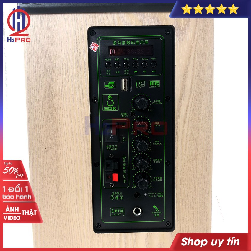Loa Kéo Karaoke Bluetooth SOK NE-328 H2Pro bass 25-350W-USB-thẻ nhớ-AUX hàng hãng, điện 220v và 12v(tặng 2 micro)