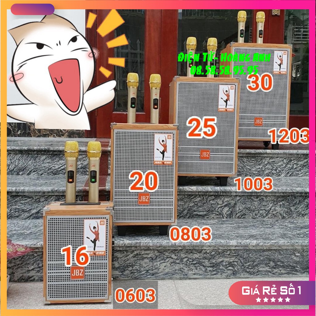 Thiết Bị Âm Thanh > Dàn âm thanh > Loa || Loa kéo karaoke di động JBZ 0803 bass 2 tấc (0603-1003-1203) kèm 2 micro nhôm UHF không dâyCòn hàng