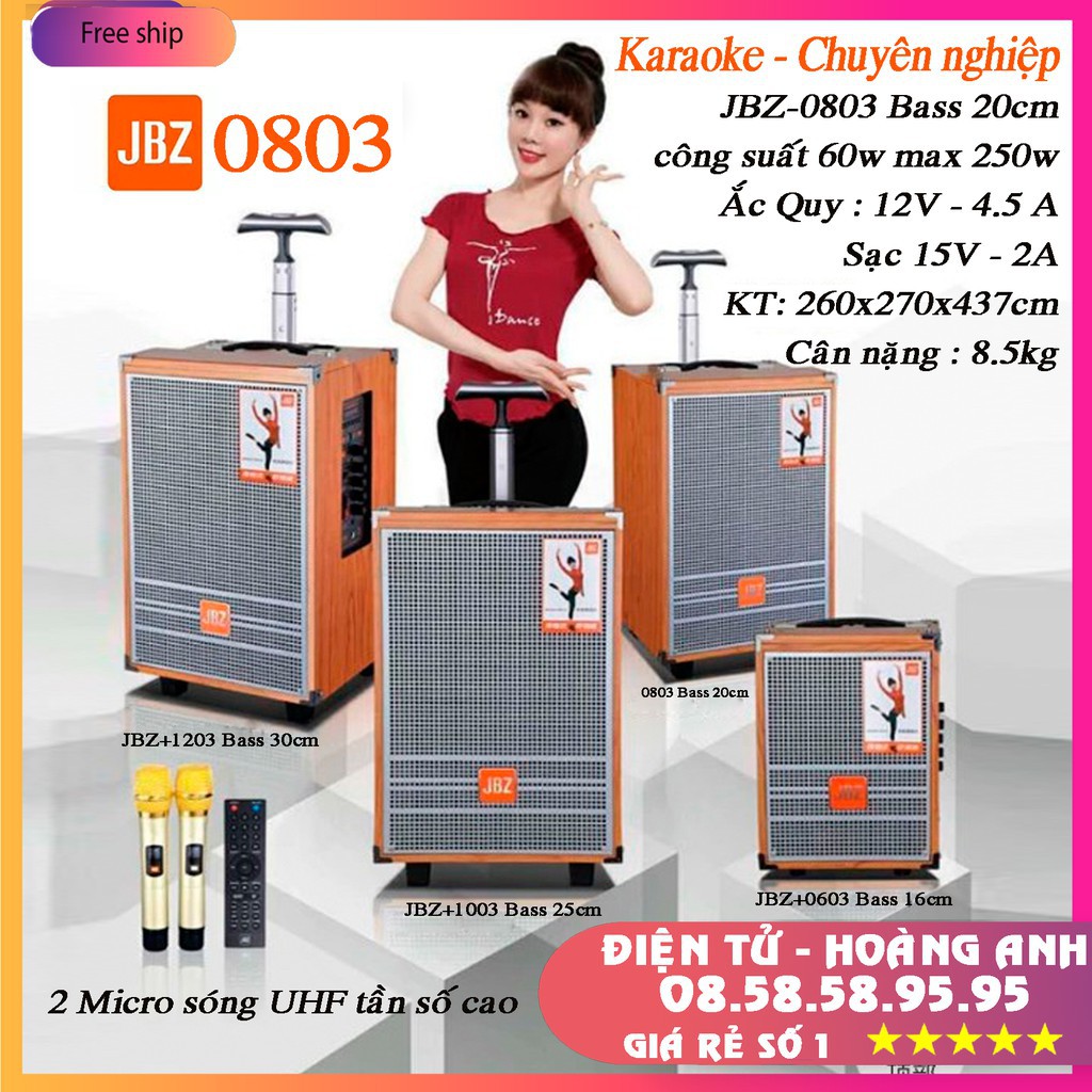 Loa kéo karaoke di động JBZ 0803 bass 2 tấc (0603-1003-1203) kèm 2 micro nhôm UHF không dây