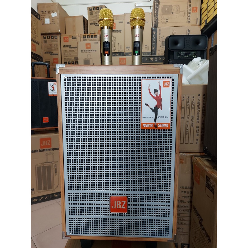 - Loa kéo di động JBZ mẫu mới ra mắt, với thùng gỗ vàng, rất đẹp mắt và sang trọng. Loa bass nén 20 cm (2 tấc), hay