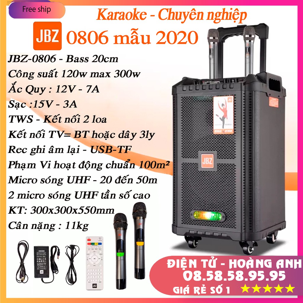 Thiết Bị Âm Thanh > Dàn âm thanh > Loa || Loa kéo karaoke JBZ-NE-0806 / 1006 / 1206 (Loa 0806 Bass 20cm công suất 120w max 300w) tặng 2 Micro UHF- Kim loạiCòn hàng