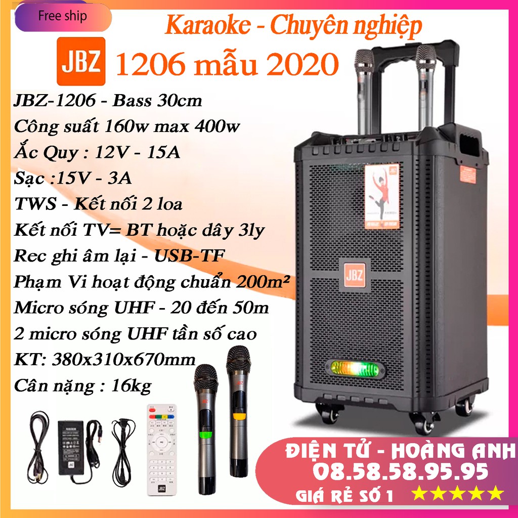 Thiết Bị Âm Thanh > Dàn âm thanh > Loa || Loa kéo karaoke JBZ-NE-1206 / 1006 / 0806 (Loa 1206 Bass 30cm công suất 160w max 400w) tặng 2 Micro UHF- Kim loạiCòn hàng