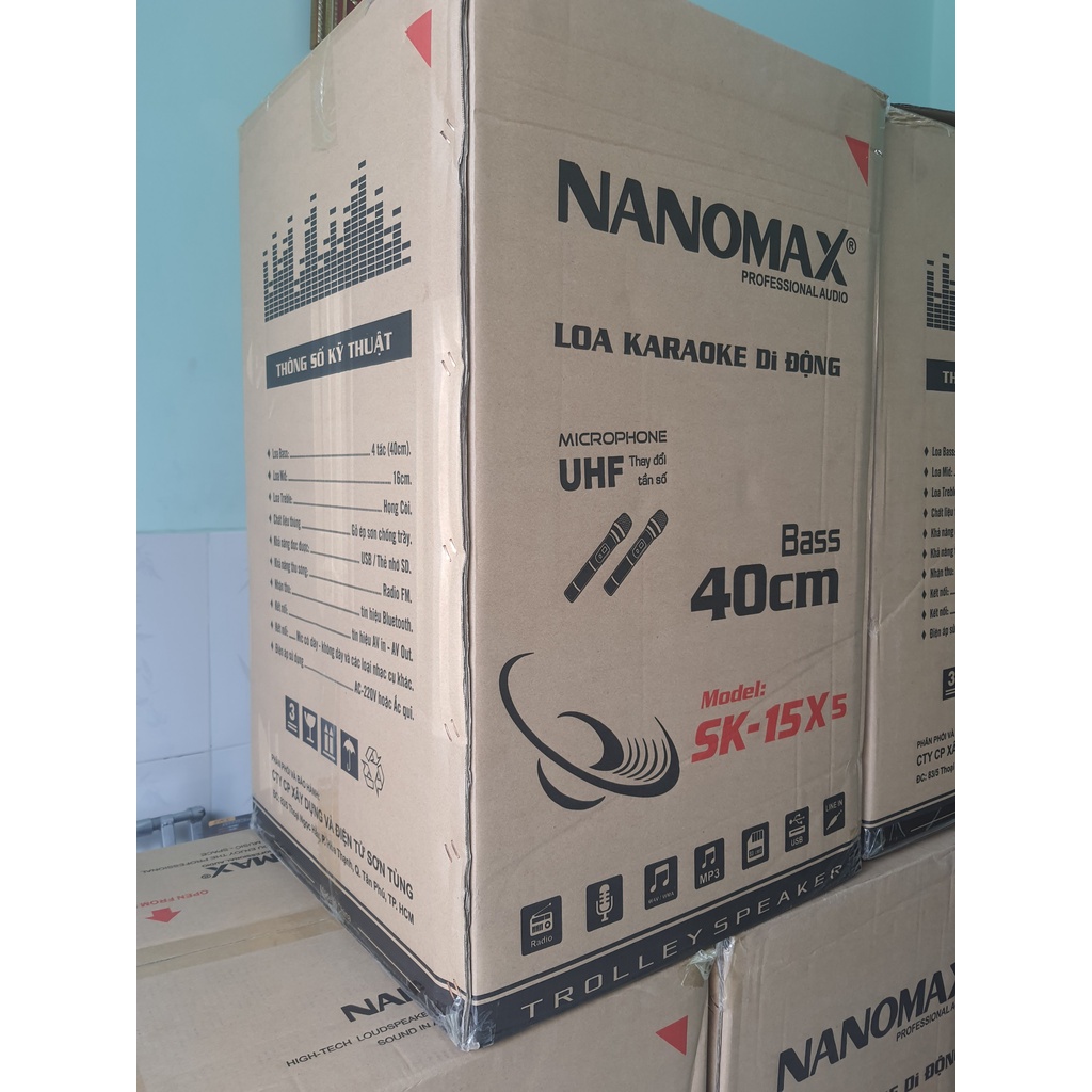 Loa Kéo Karaoke Nanomax Bluetooth SK-15X5 Bass 40 Tặng 2 Mic Đọc Được Usb Thẻ Nhớ Công Suất 620w Có Bánh Xe Cao Cấp