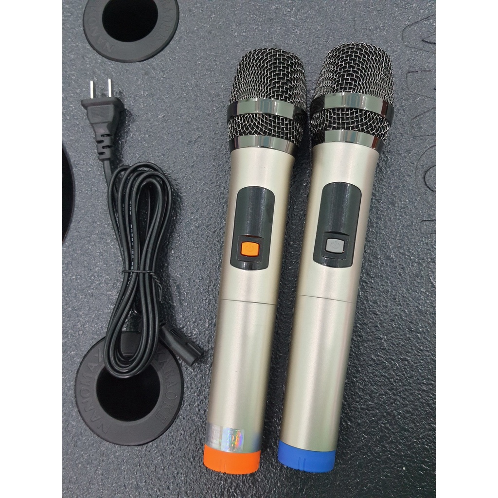 Micro của loa được làm từ kim loại sáng bóng tinh tế, đầu mic có màu bạc kim sang trọng cực nổi bật. Micro được đặt tại hai mạn loa, trong bộ giữ micro, vì vậy người dùng sẽ tiện lợi lấy micro ra sử dụng loa mà không gặp phải khó khăn.