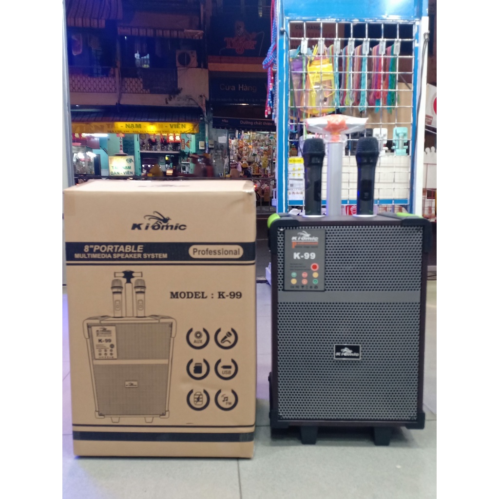 Thiết Bị Âm Thanh > Dàn âm thanh > Loa || [Mã 44ELSALE2 giảm 7% đơn 300K] Loa kéo Kiomic K99 bass 20 ốp da cực đẹp - kèm 2 mic không dây UHFCòn hàng