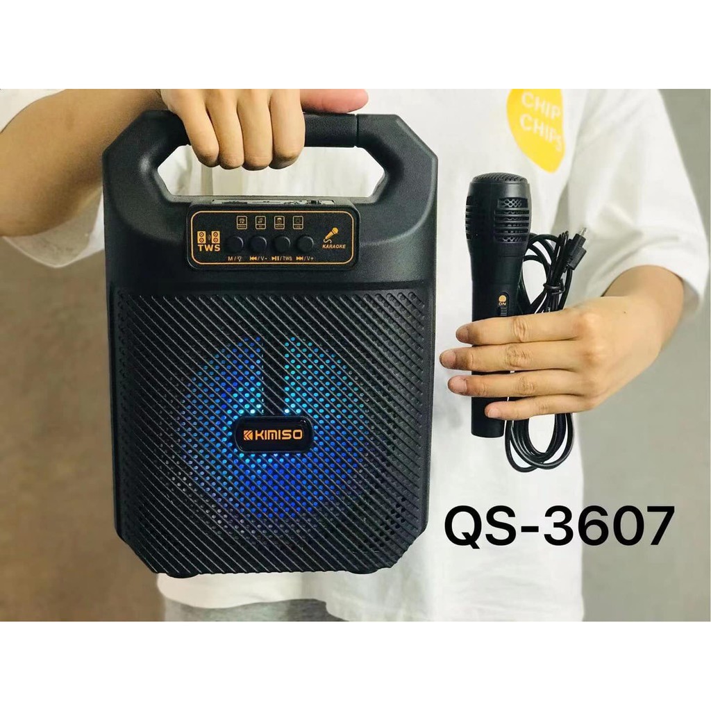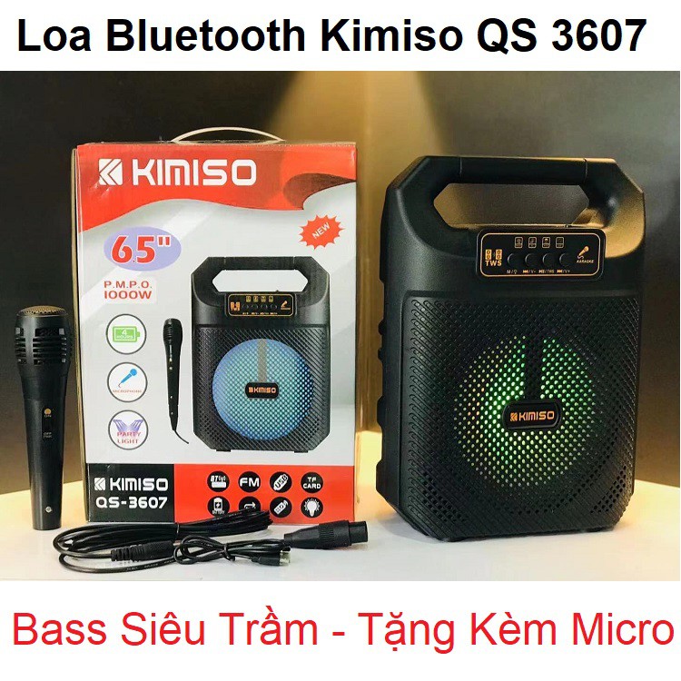 Loa Kéo Mini Nhỏ Gọn - Kết Nối Bluetooth - Âm Bass Hay - Tặng Kèm Micro Hát Karaoke - Kimiso QS 3607 - Chính Hãng
