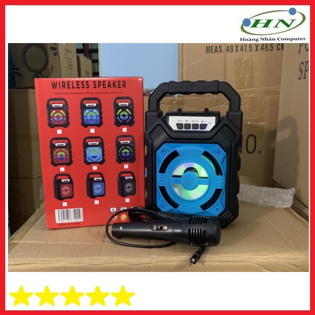 Loa Kết Nối Bluetooth Tặng Kèm Mic YD703mẫu loa bluetooth dạng có tay xách, mẫu mã nhìn khá đẹp với đèn led đổi màu, loa có thể nghe nhạc từ kết nối không dây với các thiết bị hoặc kết nối cáp với cổng AUX, nghe được vài kênh radio ( loa không chuyên radio nên nghe không được nhiều đài và bắt sóng cũng không tốt lắm).