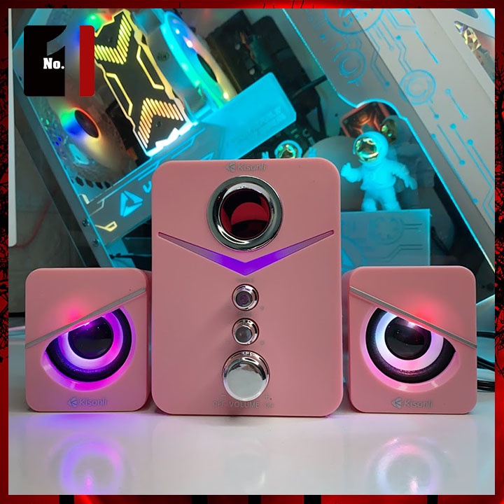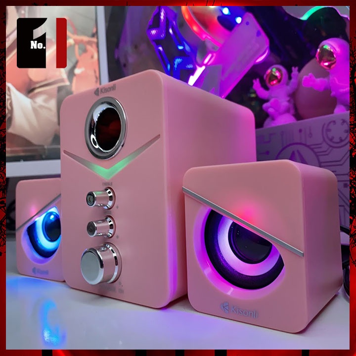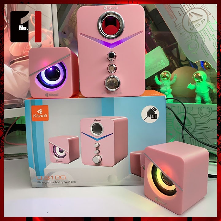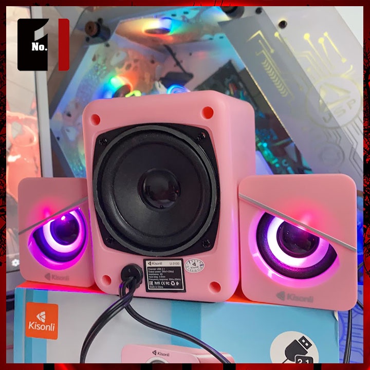 Loa Máy Tính Để Bàn Mini 2.1 Kisonli U-3100 Màu Hồng Led Rgb Loa Vi Tính Laptop Gaming Nghe Nhạc Dễ Thương Có Dây