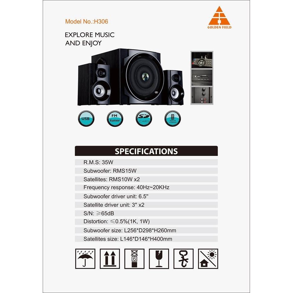 Thiết Bị Âm Thanh > Dàn âm thanh > Loa || Loa máy tính Golden Field H306 (2.1)USB/SD/Bluetooth,Remote Control - Chính hãng Bảo hành 12 thángCòn hàng