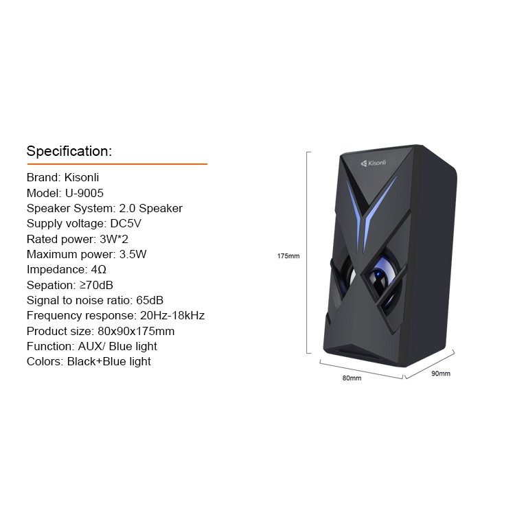 Giới thiệu LOA MÁY TÍNH KISONLI U9005, LOA LAPTOP KISONLI, LOA BỘ , LOA 2 CỤC