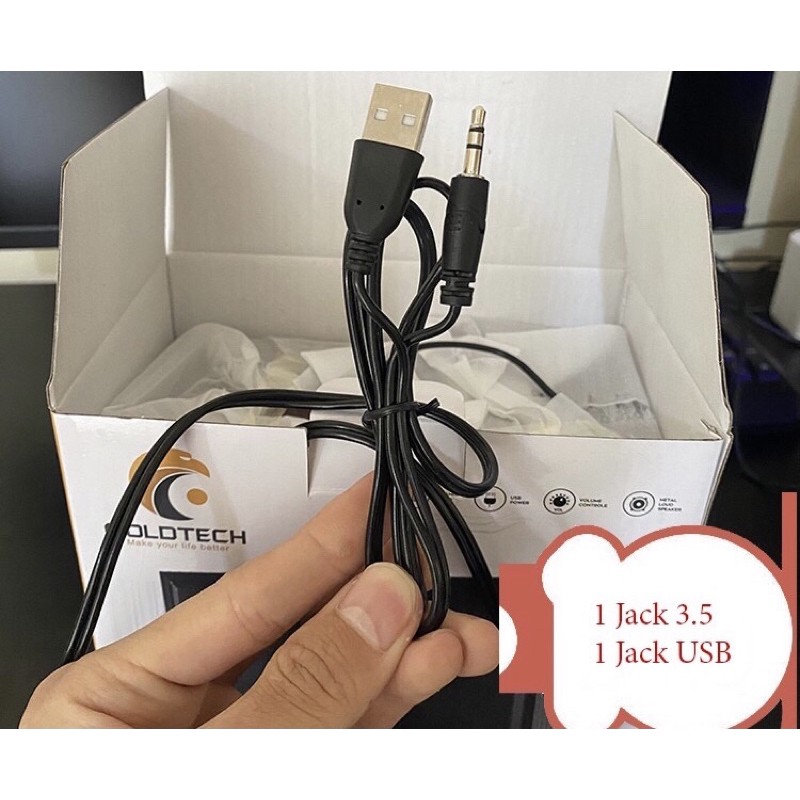 - Loa có 2 đầu cắm: 1 đầu vào ổ USB, 1 đầu vào ổ loa