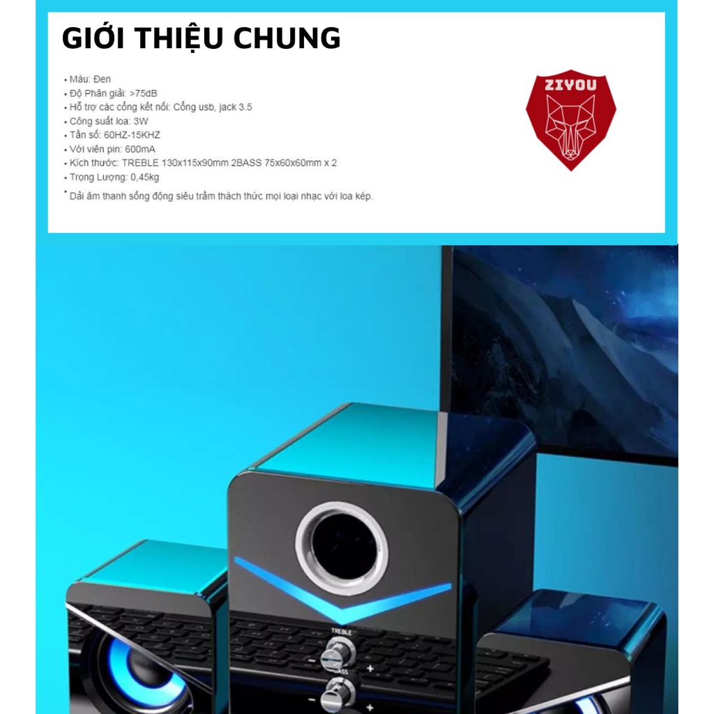 Loa máy tính vi tính để bàn ZIYOU D221 có dây,có led,BASS cực đã nghe nhạc,chơi game,dành cho điện thoại,PC,Latop