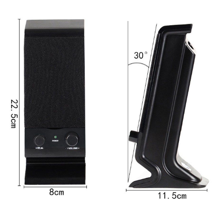 - Loa máy tính 2.0 Có hệ thống nút điều chỉnh Âm lượng, On/Off- Bộ Loa SADA V-112 với thiết kế mới khá bắt mắt, Loa nghiêng 30% giúp âm thanh đến tai thể hiện khá đầy đủ.