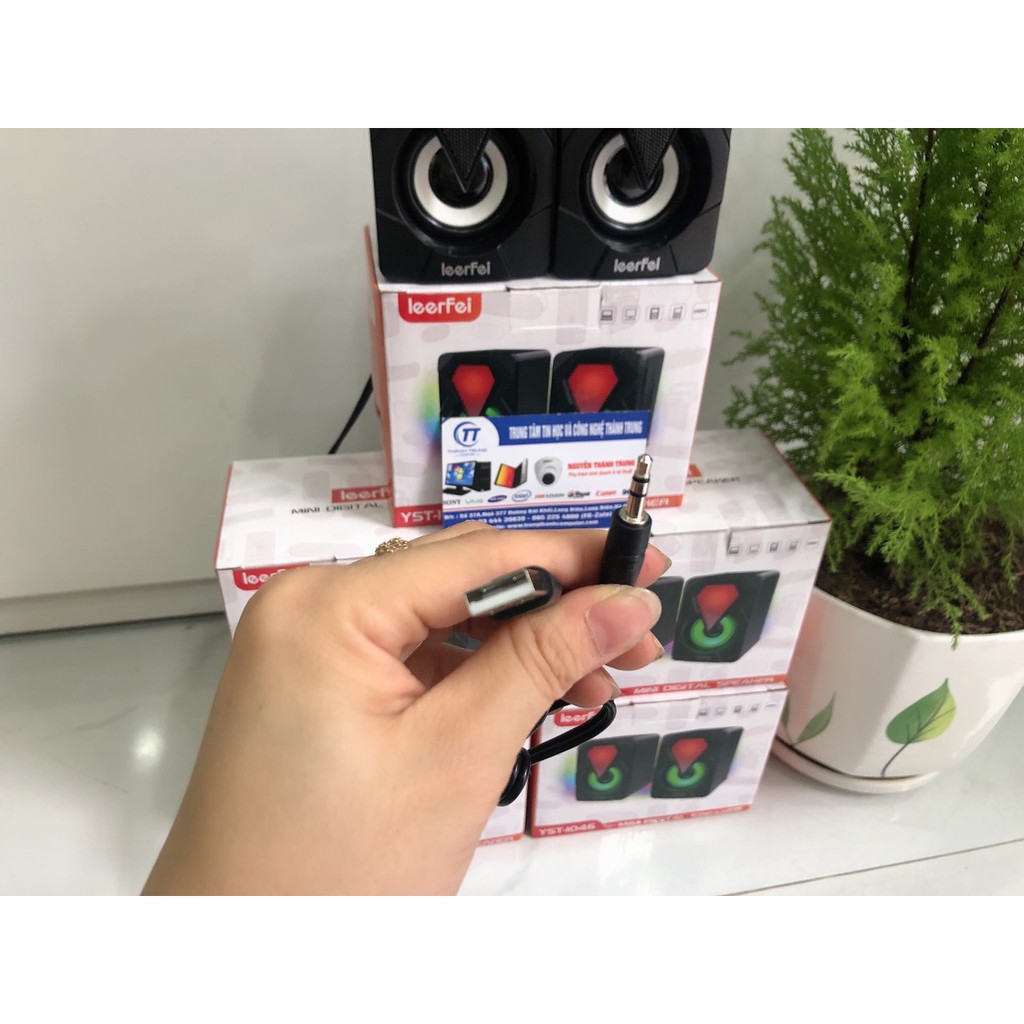 Loa mini 2.0 LeerFei YST-1046 - Loa vi tính mini LED RGB theo nhạc | bảo hành 6 tháng | giá cực rẻLoa mini usb + 3.5 cho chất lượng âm thanh cao cấp với tầm giá cực rẻ, có thể sử dụng điện thoại di động, máy tính, và các loại thiết bị khác với cổng 3.5mm, nguồn cấp usb