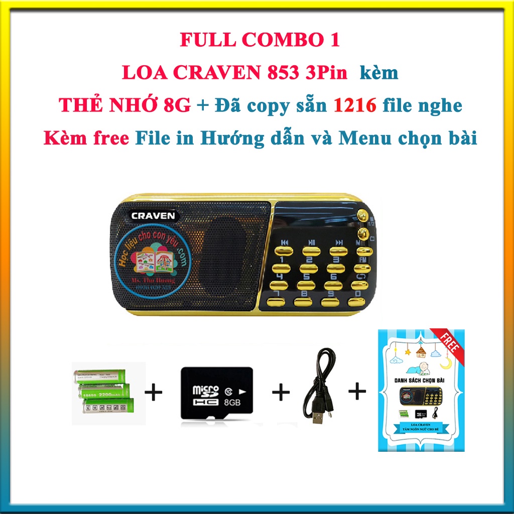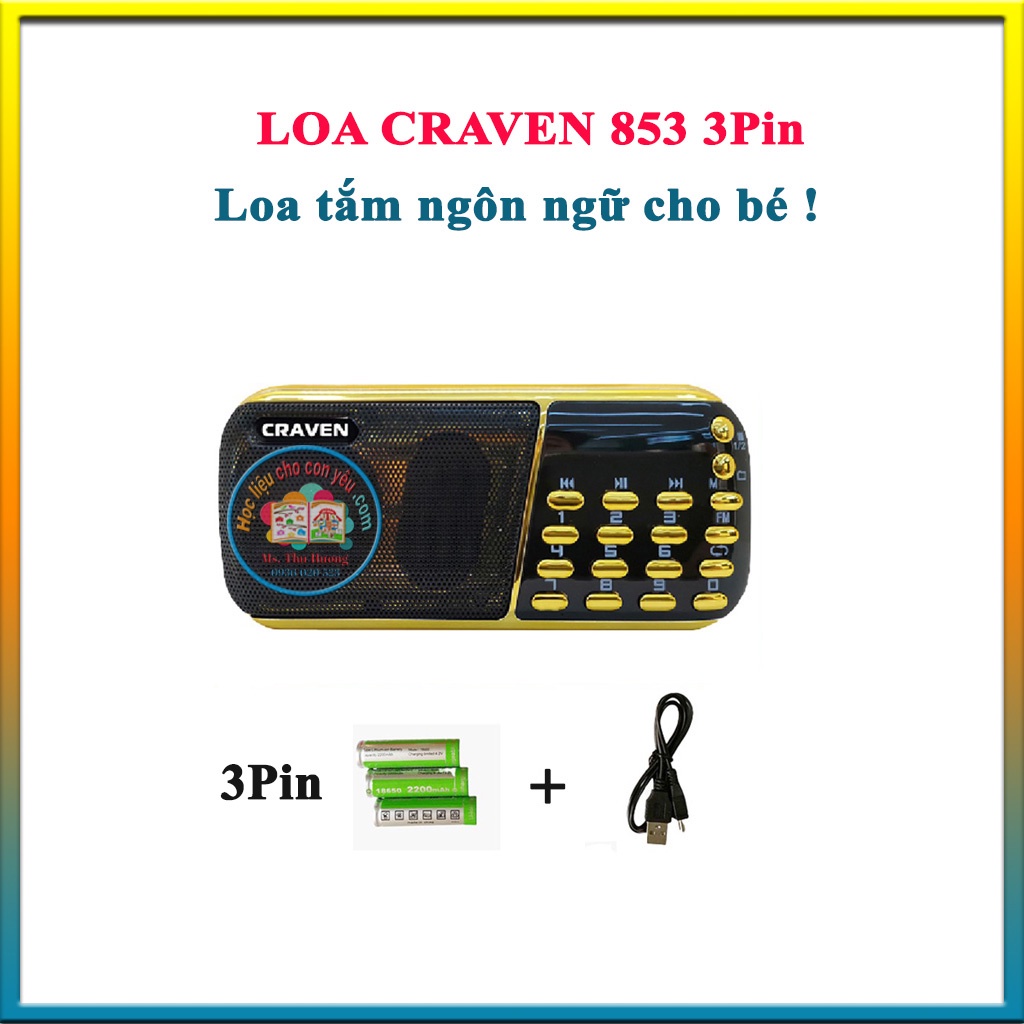 LOA NGHE CRAVEN – Loa tắm ngôn ngữ cho bé – Học tiếng Anh cho bé- Tặng kèm 1216 file nghe Anh- Việt !~~ Loa nghe nhạc USB thẻ nhớ FM Craven CR-853 3 pin siêu trâu, âm thanh 2.0 mạnh mẽ, loa sử dụng pin rời với dung lượng lớn, nghe radio + nhạc từ thẻ TF/USB.