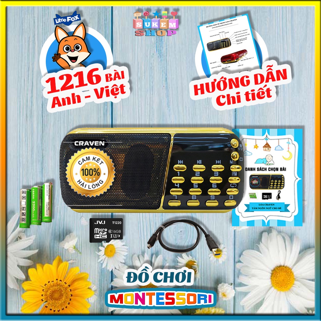 Thiết Bị Âm Thanh > Máy nghe nhạc > Radio & Cát-sét || LOA NGHE CRAVEN – Loa tắm ngôn ngữ cho bé – [Free❤]Tặng kèm 1216 file nghe Anh- Việt-Học tiếng Anh cho béCòn hàng