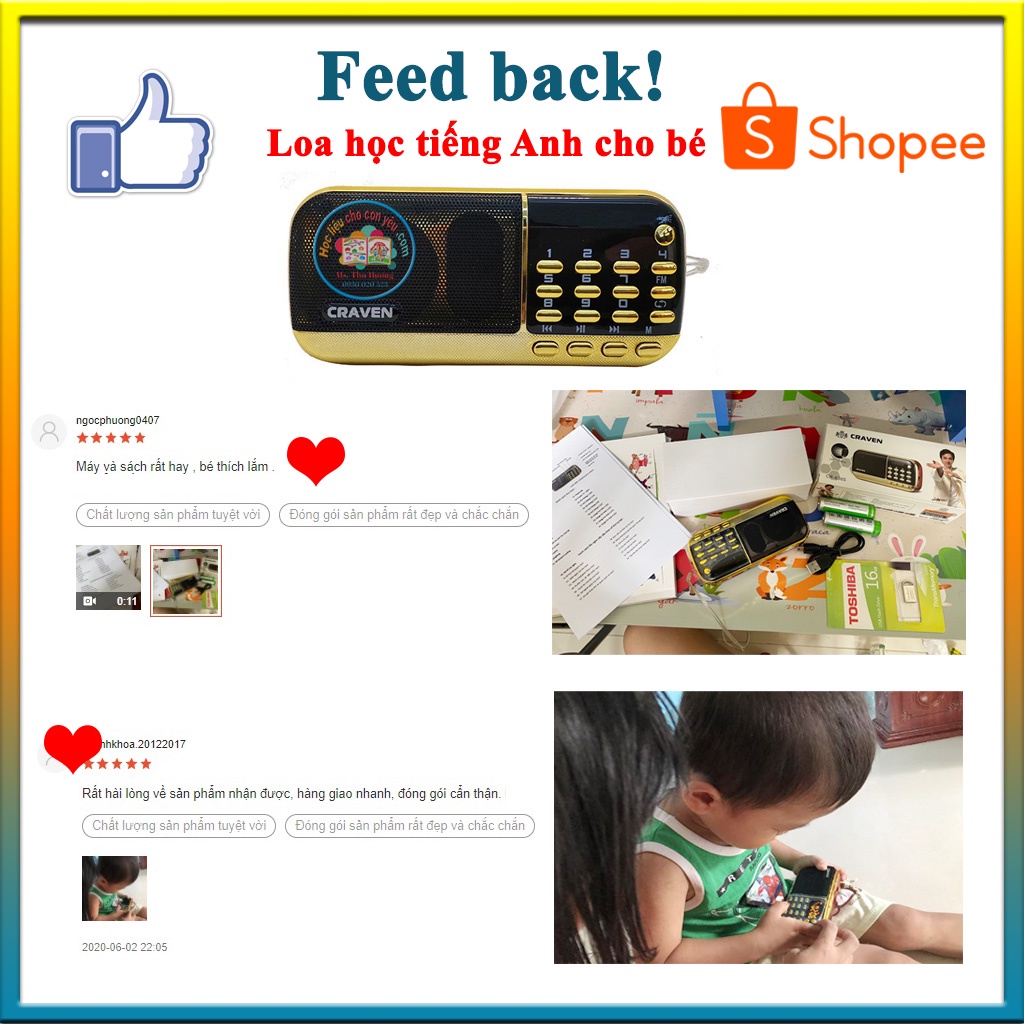 Giới thiệu LOA NGHE CRAVEN – Loa tắm ngôn ngữ cho bé – [Free❤]Tặng kèm 1216 file nghe Anh- Việt-Học tiếng Anh cho bé