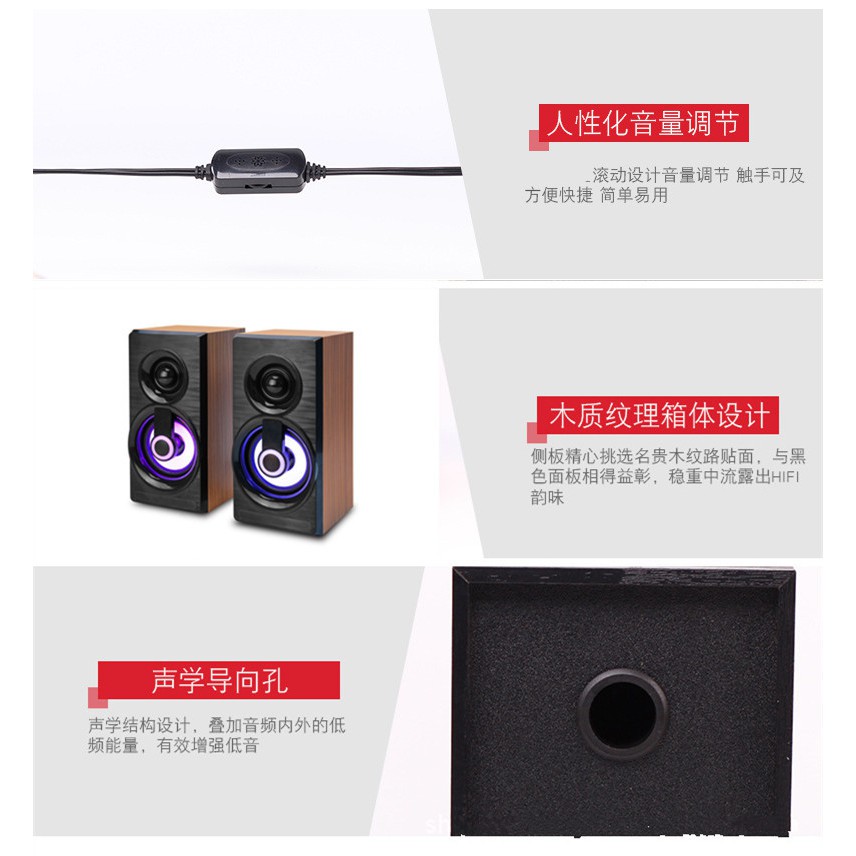 4. Loa có 2 đầu dây 1 đầu Jack 3.5 cm, 1 đầu usb có thể dung độc lập cho máy tính, điều chỉnh âm lượng trên dây nguồn.