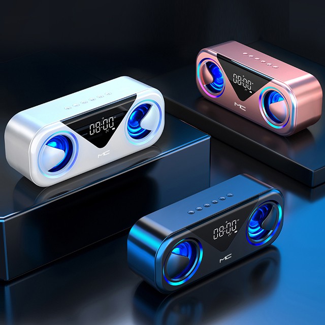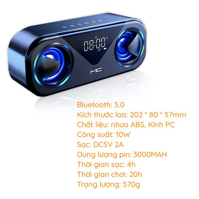 Loa Nghe Nhạc Di Động Không Dây Công Suất Lớn MC H9 Có Đèn Led Xanh Nổi Bật - Loa Bluetooth Siêu Trầm - Đài FM - Đồng Hồ